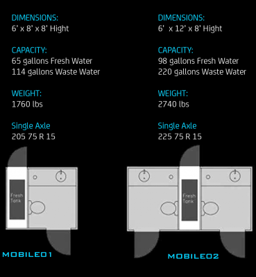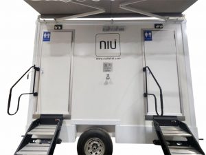 Our Mobilio 1 + 2 Series- are sized from 8 feet to 16 feet- and are custom designed to suit our clients needs. The standard trailer bathroom at 12 or 16 feet is equipped with a men’s room and a women’s room- and we are able to provide ADA stations as well.
